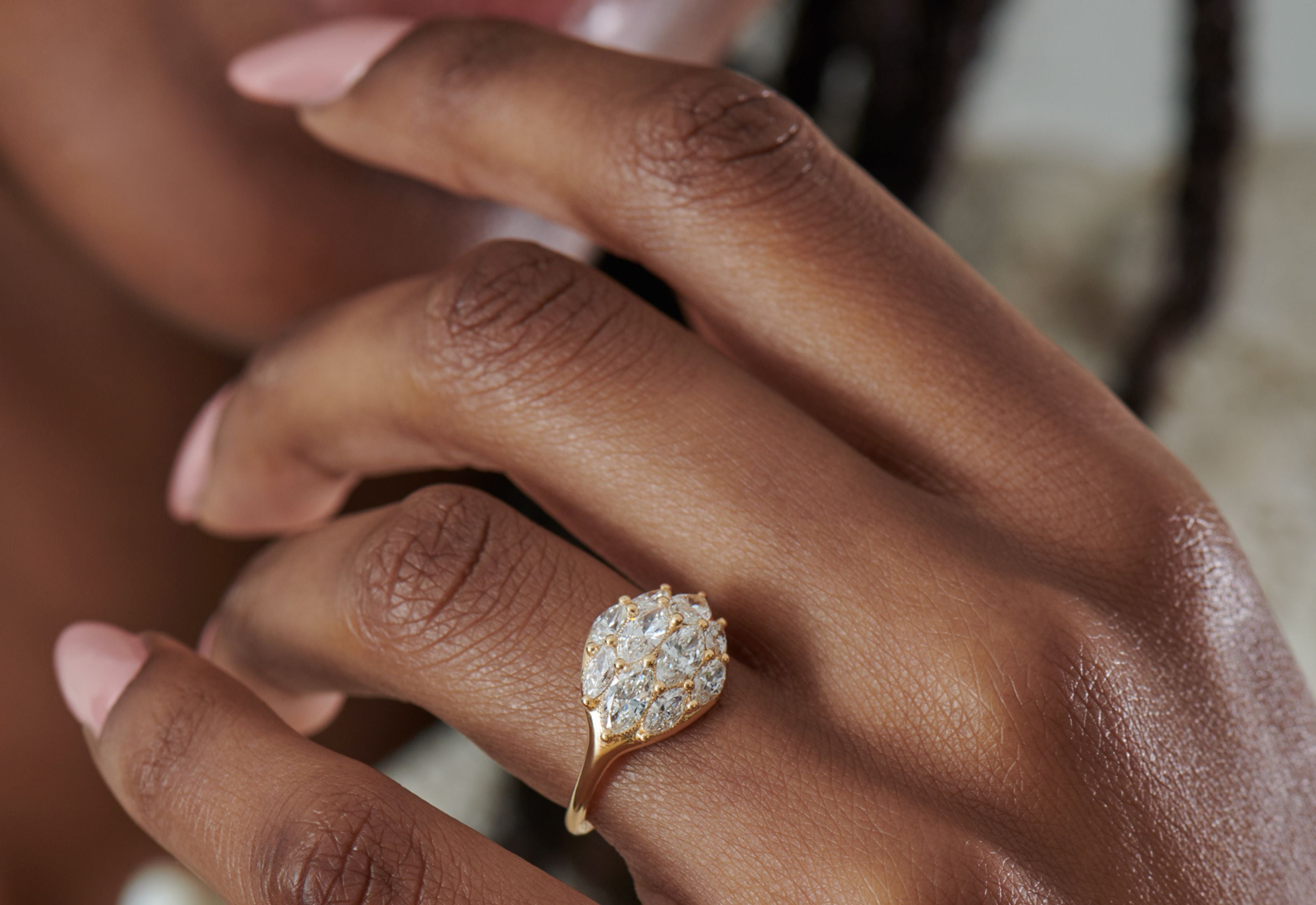Discover Drop 2 of the Spirit Collection by Julez Bryant featuring 14k gold wavy cuffs, diamond cocktail rings, and organic stacking rings.